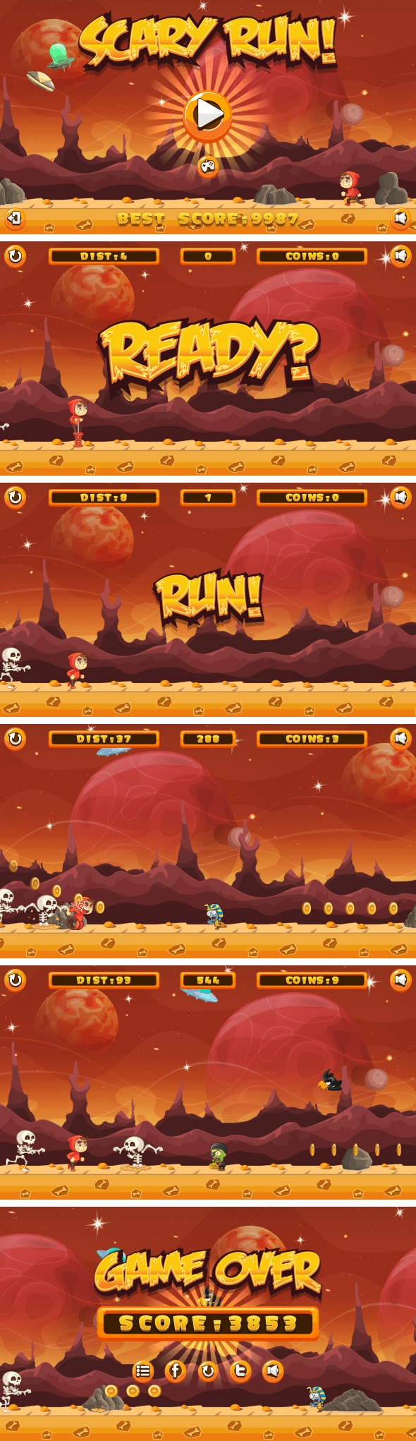 Game Bat > Hot Games > Scary Run Scary Run 2021Hot Games This game is about that guy abducted by aliens and sent him to the planet Mars, on this planet is inhabited by many different zombies and monsters, the guy very much frightened, help him survive! Made in Construct 2. Enjoy the game!